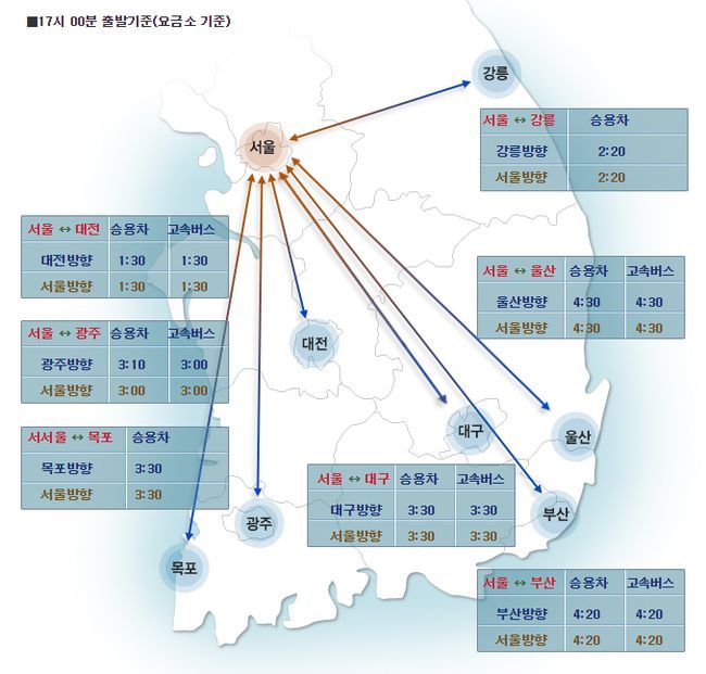 추석 연휴 첫날 주요 도시간 소요시간에 관심이 몰리고 있다.