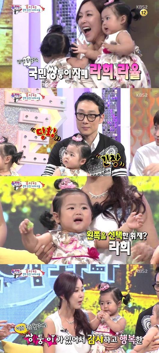 라희와 라율은 요정같은 미모를 뽐내며 패널들의 감탄을 자아냈고, 슈는 "아이들 덕에 스케줄 끝나고 집에 가는 것이 즐겁다"고 밝혔다.