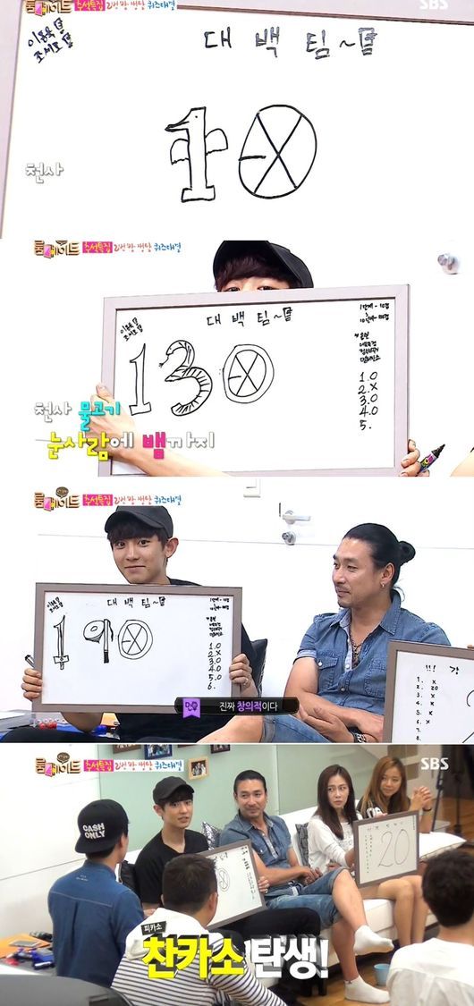 이날 찬열은 단위를 묻는 문제에 대한 답으로 숫자마다 남다른 창의력을 발휘했다. 숫자 10을 표현할 때는 1에 날개 달은 천사를 그리고, 40을 쓸 때는 4를 물고기로 표현해 멤버들을 놀라게 했다.