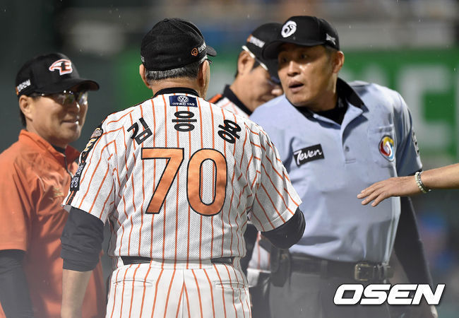 하지만 김 감독의 어필에도 김태완의 타구는 유격수 땅볼로 처리됐고, 한화의 공격도 그대로 종료되고 말았다. 한화는 2-3으로 뒤진 상황에서 중요한 찬스를 아쉽게 더블 플레이로 끝나 흐름이 끊겼다.