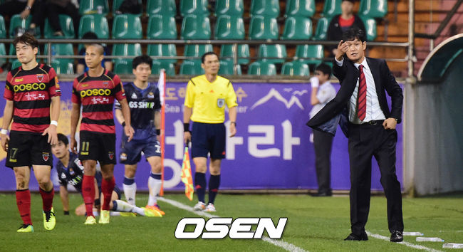 7일 오후 포항 스틸야드에서 열린 '현대오일뱅크 K리그 클래식 2014' 포항 스틸러스와 FC 서울의 경기 전반 최용수 감독이 선수들에게 지시를 하고 있다.