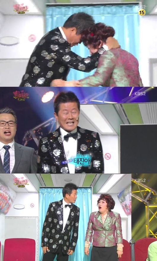 가수 태진아가 '끝사랑'을 통해 김영희와 커플 댄스를 선보여 웃음을 선사했다.