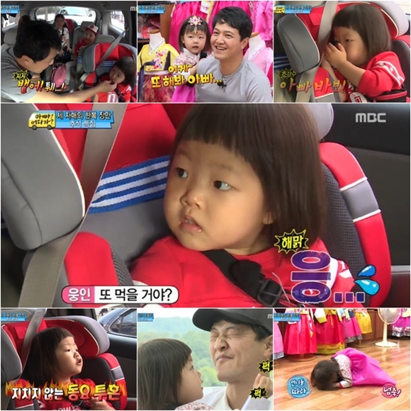 한복 쇼핑에 나서던 중 다윤은 차안에서 동요를 따라 부르면서 들뜬 마음을 표현했다. 그러던 중 자신의 코딱지를 입으로 가져가는 행동으로 정웅인의 시선을 빼앗았다. 정웅인은 깜짝 놀라 다윤의 입에 있는 이물질을 꺼내면서 "배가 고프냐?"고 물었고, 다윤은 자연스럽게 "응"이라고 대답해 웃음을 자아냈다.