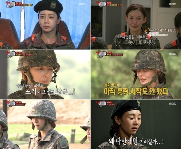 특히 김소연은 많이 힘들어하는 모습이었다. 앞서 이미 저절 체력을 증명했던 김소연. 하지만 김소연은 훈육관의 만류에도 끝까지 동기들과 함께 얼차려를 받으며 다시 한 번 악바리 정신을 보여줬다. 또 명랑소녀 혜리조차 엄마와의 통화에서 눈물을 왈칵 쏟는 등 이날 멤버들은 고된 훈련에 지쳐가는 모습이 역력했다.