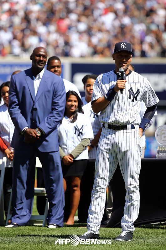 NBA 전설의 슈퍼스타 마이클 조던(51)이 뉴욕 양키스 '영원한 캡틴' 데릭 지터(41)의 은퇴식을 찾아 자리를 빛냈다. 지터는 8일(이하 한국시간) 미국 뉴욕주 브롱스 양키스타디움에서 열린 캔자시스티 로열스와 홈경기를 앞두고 은퇴식 행사를 가졌다.