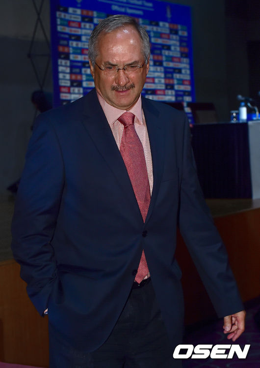 울리 슈틸리케 감독이 기자회견장을 나서고 있다.