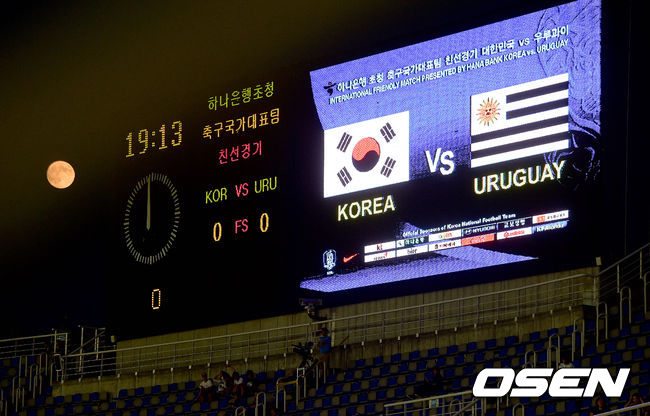 8일 오후 경기도 고양시 고양종합운동장에서 열리는 '대한민국 vs 우루과이' 국가대표 평가전을 앞두고, 밝은 보름달이 떠오르고 있다.