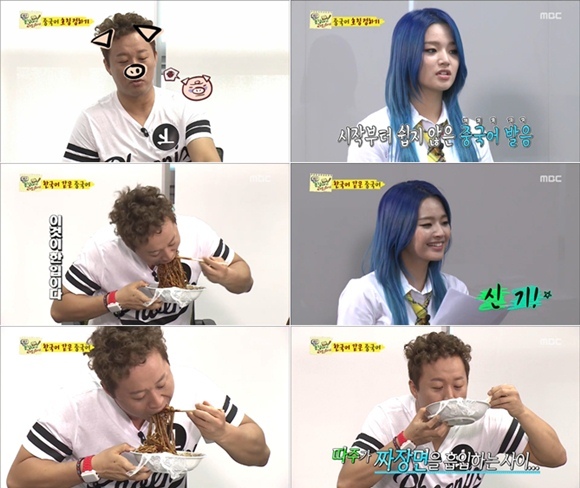 세 사람은 자장면을 주문했고, 지혜란은 중국어 단어 문제를 내서 맞추는 사람에게 자장면을 먹을 기회를 줬다. 처음에는 김희철이 앞서나가는가 싶더니 이내 정준하가 빠르게 문제를 맞췄고, 정준하는 놀라운 자장면 먹방으로 시선을 사로잡았다.