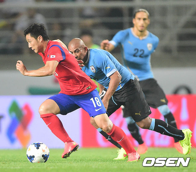 한국 축구대표팀(FIFA랭킹 57위)은 8일 오후 고양종합운동장서 열린 우루과이와 A매치서 0-1로 아쉽게 패했다. 지난 5일 베네수엘라에 선제골을 내준 뒤 3-1 대역전승을 거뒀던 한국은 남미의 강호 우루과이를 상대로 분전했으나 후반 25분 호세 히메네스에게 결승골을 내주며 패하고 말았다. 이날 패배로 한국은 우루과이를 상대로 역대 7전 1무 6패로 열세를 이어가게 됐다.