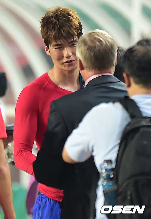 경기 종료 후 기성용이 울리 슈틸리케 감독와 이야기를 나누고 있다./youngrae@osen.co.kr