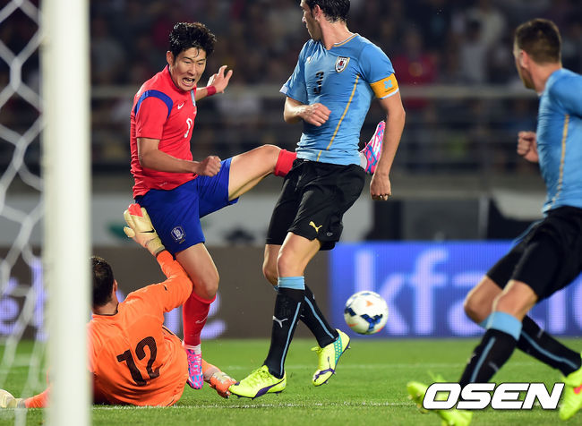 경기 후반 손흥민의 슈팅이 우루과이 키퍼에 막혔다./youngrae@osen.co.kr