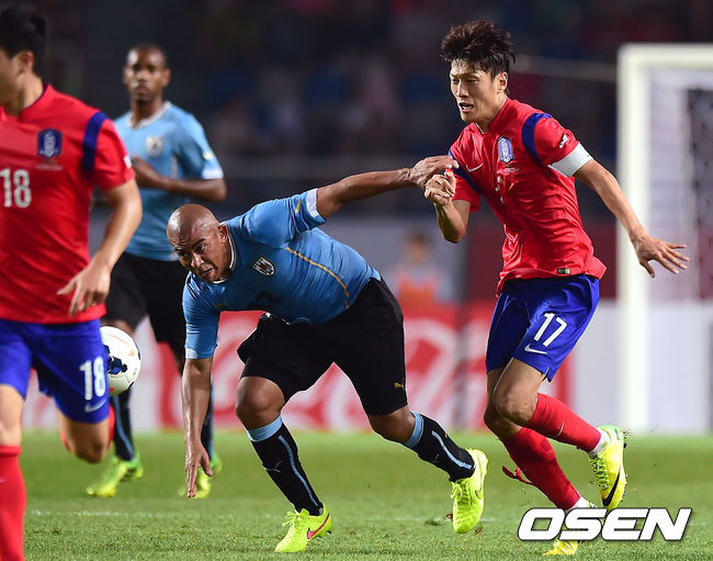 한국 축구대표팀(FIFA랭킹 57위)은 8일 오후 고양종합운동장서 열린 우루과이와 A매치서 0-1로 아쉽게 패했다. 지난 5일 베네수엘라에 선제골을 내준 뒤 3-1 대역전승을 거뒀던 한국은 남미의 강호 우루과이를 상대로 분전했으나 후반 25분 호세 히메네스에게 결승골을 내주며 패하고 말았다. 이날 패배로 한국은 우루과이를 상대로 역대 7전 1무 6패로 열세를 이어가게 됐다.