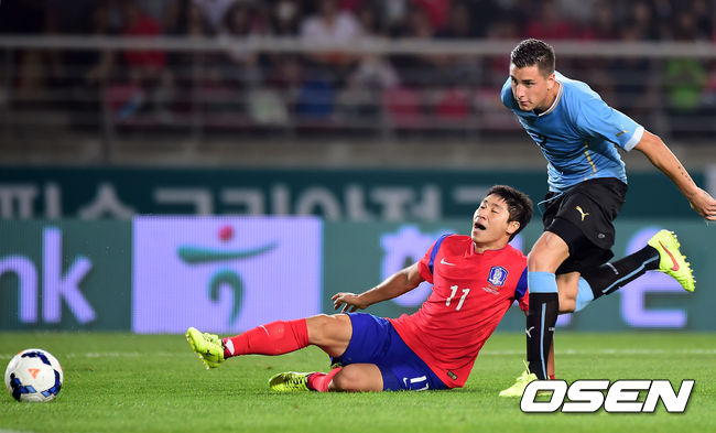 한국 축구대표팀(FIFA랭킹 57위)은 8일 오후 고양종합운동장서 열린 우루과이와 A매치서 0-1로 아쉽게 패했다. 지난 5일 베네수엘라에 선제골을 내준 뒤 3-1 대역전승을 거뒀던 한국은 남미의 강호 우루과이를 상대로 분전했으나 후반 25분 호세 히메네스에게 결승골을 내주며 패하고 말았다. 이날 패배로 한국은 우루과이를 상대로 역대 7전 1무 6패로 열세를 이어가게 됐다.