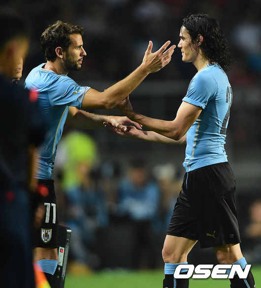 후반 우루과이 카바니가 스투아니와 교체되며 인사를 나누고 있다./dreamer@osen.co.kr