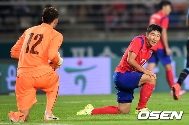경기 후반 이근호가 득점 찬스를 놓친 뒤 아쉬워하고 있다./youngrae@osen.co.kr