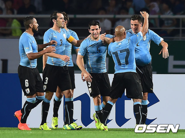 경기 후반 우루과이 호세 히메네스가 선취골을 넣고 기뻐하고 있다./youngrae@osen.co.kr