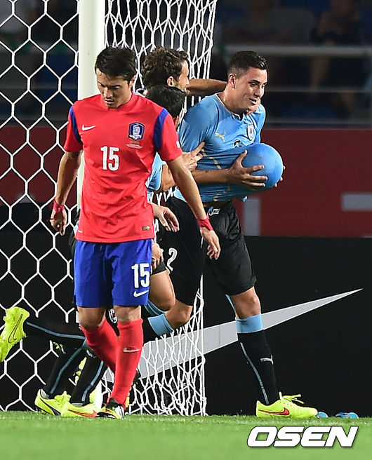 한국 축구대표팀(FIFA랭킹 57위)은 8일 오후 고양종합운동장서 열린 우루과이와 A매치서 0-1로 아쉽게 패했다. 지난 5일 베네수엘라에 선제골을 내준 뒤 3-1 대역전승을 거뒀던 한국은 남미의 강호 우루과이를 상대로 분전했으나 후반 25분 호세 히메네스에게 결승골을 내주며 패하고 말았다. 이날 패배로 한국은 우루과이를 상대로 역대 7전 1무 6패로 열세를 이어가게 됐다.