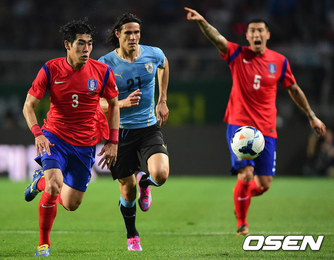 전반 한국 김주영이 우루과이 카바니와 볼다툼을 벌이고 있다./dreamer@osen.co.kr