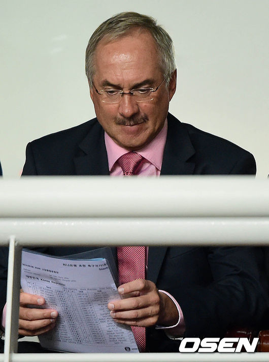 경기 시작을 앞두고 슈틸리케 신임 감독이 라인업을 살피고 있다./dreamer@osen.co.kr