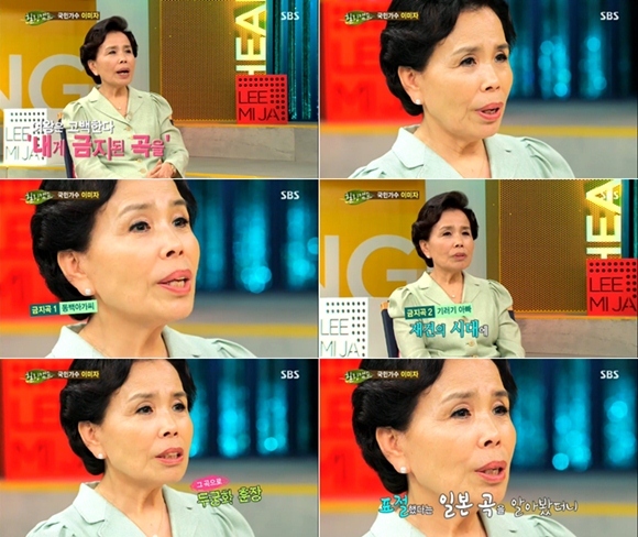 이미자는 8일 오후 방송된 SBS 토크쇼 '힐링캠프, 기쁘지 아니한가'에 출연해 '동백 아가씨'가 금지곡이 된 사연을 공개했다.