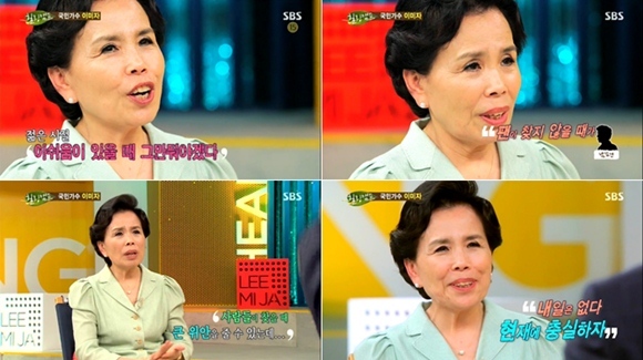 이미자는 8일 오후 방송된 SBS 토크쇼 '힐링캠프, 기쁘지 아니한가'에 출연해 은퇴 시기에 대해 언급했다.