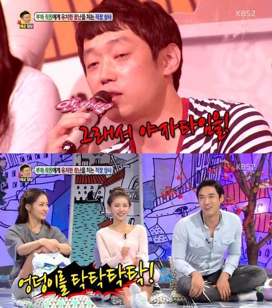 8일 오후 11시 10분 방송된 KBS 2TV '대국민 토크쇼 안녕하세요'에는 부하 직원에게 심한 장난을 치는 상사가 등장해 모두를 경악하게 만들었다.
