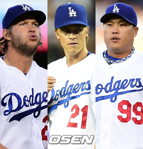 지난해에도 다저스 1~3선발로 활약한 커쇼·그레인키·류현진은 나란히 14승 이상 올렸다. 커쇼가 16승, 그레인키가 15승, 류현진이 14승으로 45승을 합작했다. 올해는 잔여 19경기를 남겨논 시점에서 이미 45승을 합작, 2년 연속 14승+ 트리오로 거듭났다.