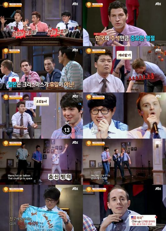 이뿐 아니라 장기자랑에서 ‘시경바라기’ 기욤은 성시경의 ‘거리에서’를 불러 성시경을 감동시키는가 하면 타일러, 타쿠야, 장위안이 선보인 무대에서 공부를 제일 잘하는 줄 알았던 타일러가 느끼하게 춤을 추며 의외의 노래실력을 보여줘 패널들을 깜짝 놀라게 했다. 유독 영어가 약한 모습을 보였던 장위안은 진지하게 팝송을 불렀지만 무대 후 중국어로 섞어가면서 노래했다고 털어놔 패널들을 폭소케 했다.