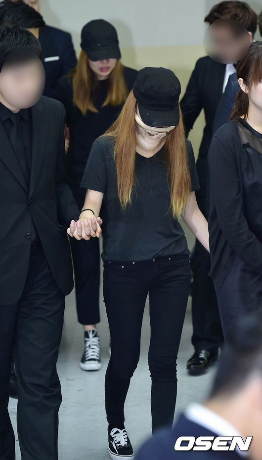 레이디스코드 故 권리세의 발인식에서 주니-애슐리가 부축을 받아 이동하고 있다.