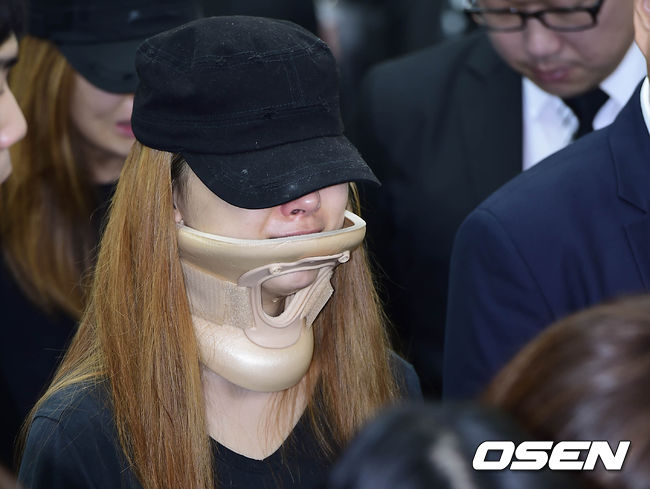 레이디스코드 故 권리세의 발인식에 팀 동료 주니가 참석해 눈물을 흘리고 있다.