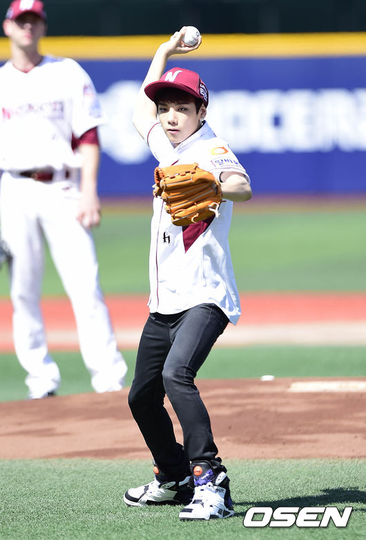 9일 오후 서울 목동구장에서 열린 '2014 한국야쿠르트 프로야구 세븐 프로야구' 넥센 히어로즈와 한화 이글스의 경기, 경기시작전 시구를 맡은 하이포 임영준이 힘차게 공을 던지고 있다.