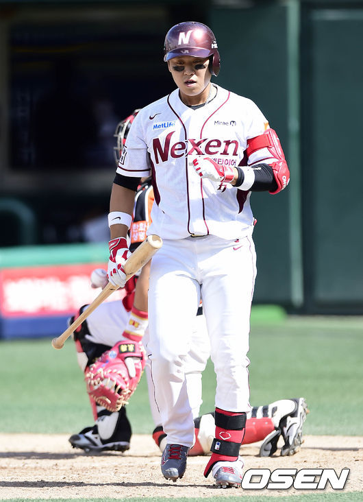 9일 오후 서울 목동구장에서 열린 '2014 한국야쿠르트 프로야구 세븐 프로야구' 넥센 히어로즈와 한화 이글스의 경기, 2회말 무사 주자 2루 넥센 김지수가 11구까지 가는 승부 끝에 볼넷을 얻어 내고 있다.
