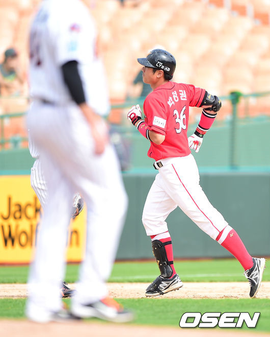 3회초 1사 1,2루 스리런 홈런을 날린 박정권이 그라운드를 돌고 있다.