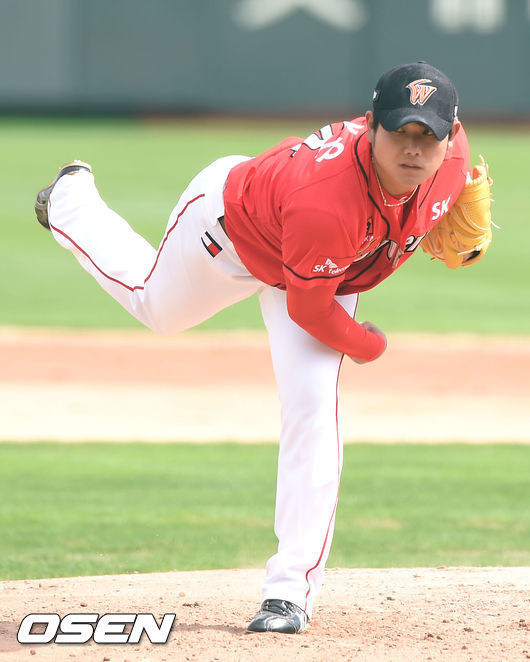 SK 와이번스 우완 문광은이 데뷔 첫 승 요건을 채우고 마운드를 내려갔다.