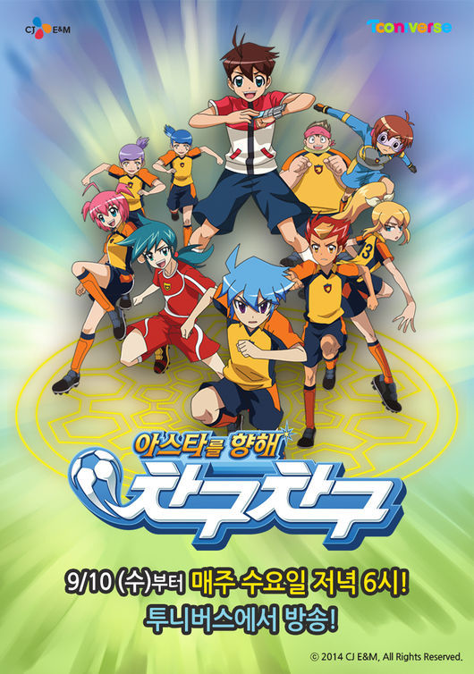 10일 오후 6시 케이블채널 투니버스에서 첫방송하는 ‘아스타를 향해! 차구차구!’는 2014년 9월 인천 아시안게임, 2015년 1월 아시안 풋볼컵(AFC) 등 연이은 국제 축구 스포츠의 해를 맞아 선보이는 국내 유일 국산 축구 애니메이션이다.