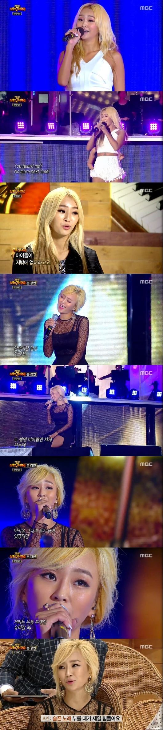 효린은 지난 9일 오후 방송된 MBC 추석특집 예능프로그램 '2014 나는 가수다'에서 선배 가수 박선주의 ‘귀로’를 불러 준우승을 차지했다. 쟁쟁한 선배들을 이겼을 뿐 아니라 자신의 주 무대였던 ‘불후의 명곡’이 아닌 ‘나는 가수다’에서 거둔 값진 성취였다.
