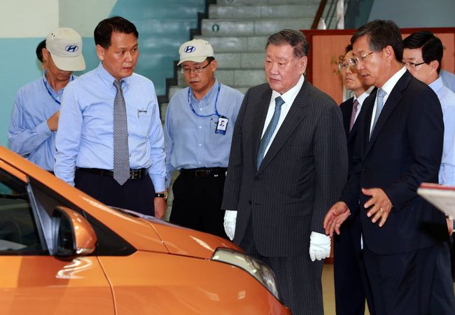 정몽구 현대차그룹 회장이 현대차의 소형차 전략 생산기지인 인도공장과 터키공장을 방문해 현지화된 소형차의 경쟁력을 점검했다. 정몽구 회장은 6일 인도행 비행기에 올라 현대차 인도공장과 터키공장을 연이어 방문해 생산 및 판매 전략을 살피고, 해외에서 최선을 다하고 있는 현지 임직원과 가족들을 격려했다.
