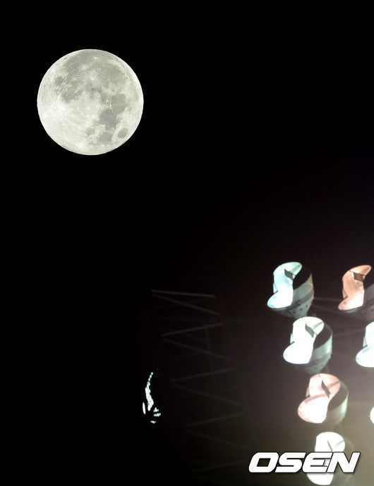 다저스타디움을 환희 비춘 슈퍼문. 동양과는 달리 서양에서는 불길한 것으로 인식한다. 영어로 '미친 사람'을 뜻하는 '루나틱(lunatic)'이 달을 뜻하는 라틴어 루나(luna)에서 비롯된 것을 보면 알 수 있다. 그래서일까? 다저스 수비는 한 순간 팬들을 '멘붕' 빠뜨렸다.