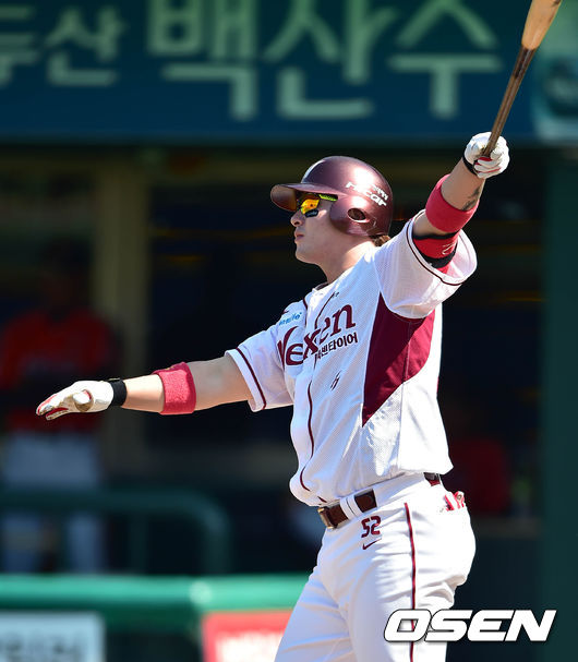 2회말 무사에서 넥센 박병호가 중전 2루타를 치고 있다.