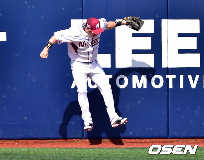 4회초 1사에서 넥센 이택근이 한화 김경언의 타구를 잡고 있다.