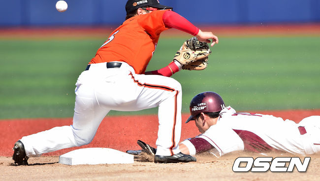 5회말 1사 1루 넥센 이택근 타석때 1루주자 서건창이 도루에 성공하고 있다.