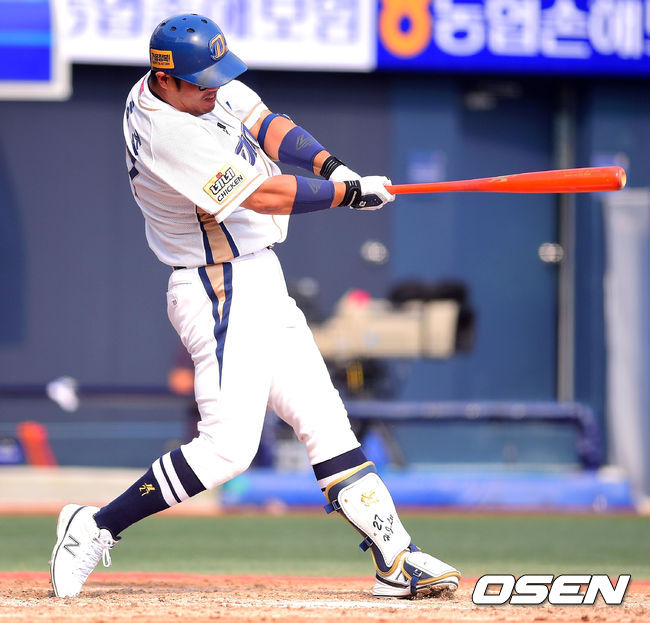 10일 오후 경남 창원시 마산구장에서 열린 2014 한국야쿠르트 세븐 프로야구 NC 다이노스와 삼성 라이온스의 경기,4회말 1사 1루 NC 이호준이 선취 1타점 적시타를 날리고 있다.