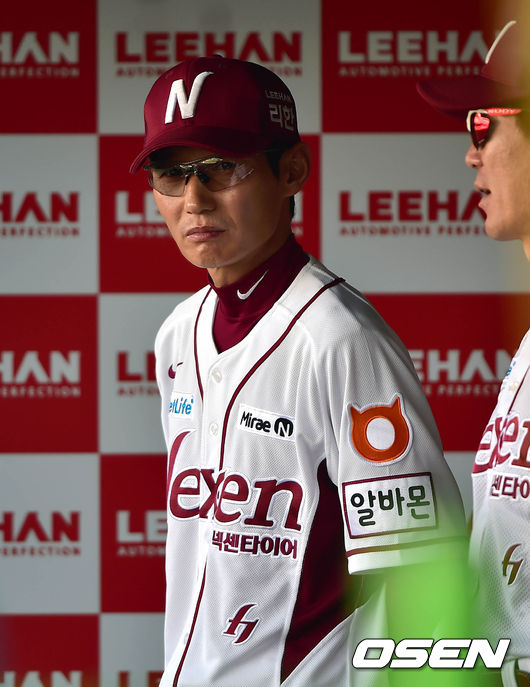 넥센 염경엽 감독이 더그아웃에서 경기를 바라보고 있다.