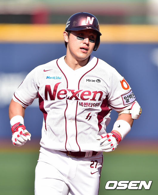 7회말 무사에서 넥센 박동원이 중월 솔로 홈런을 치고 그라운드를 돌고 있다.