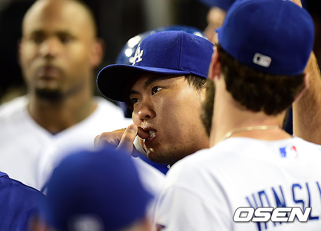 9회말 다저스 류현진이 더그아웃에서 경기를 지켜보고 있다./ jpnews@osen.co.kr