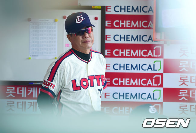 6회말 롯데 김시진 감독이 덕아웃에서 경기를 지켜보고 있다.