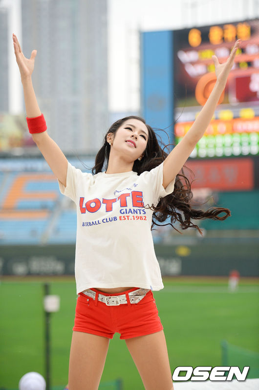 롯데 치어리더 박기량이 힘찬 응원을 펼치고 있다.