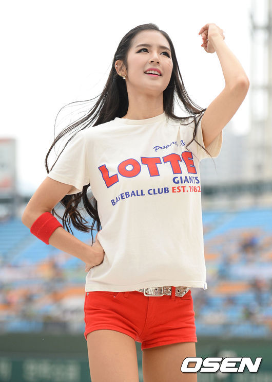 롯데치어리더 박기량이 힘찬 응원을 펼치고 있다.