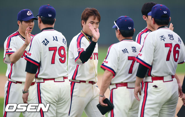 경기종료 후, 승리한 롯데 선수들이 코치 및 스텝들과 하이파이브를 나누고 있다. /ouxou@osen.co.kr