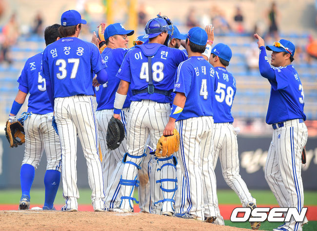 경기종료 후 삼성 선수들이 승리의 기쁨을 나누고 있다./ soul1014@osen.co.kr
